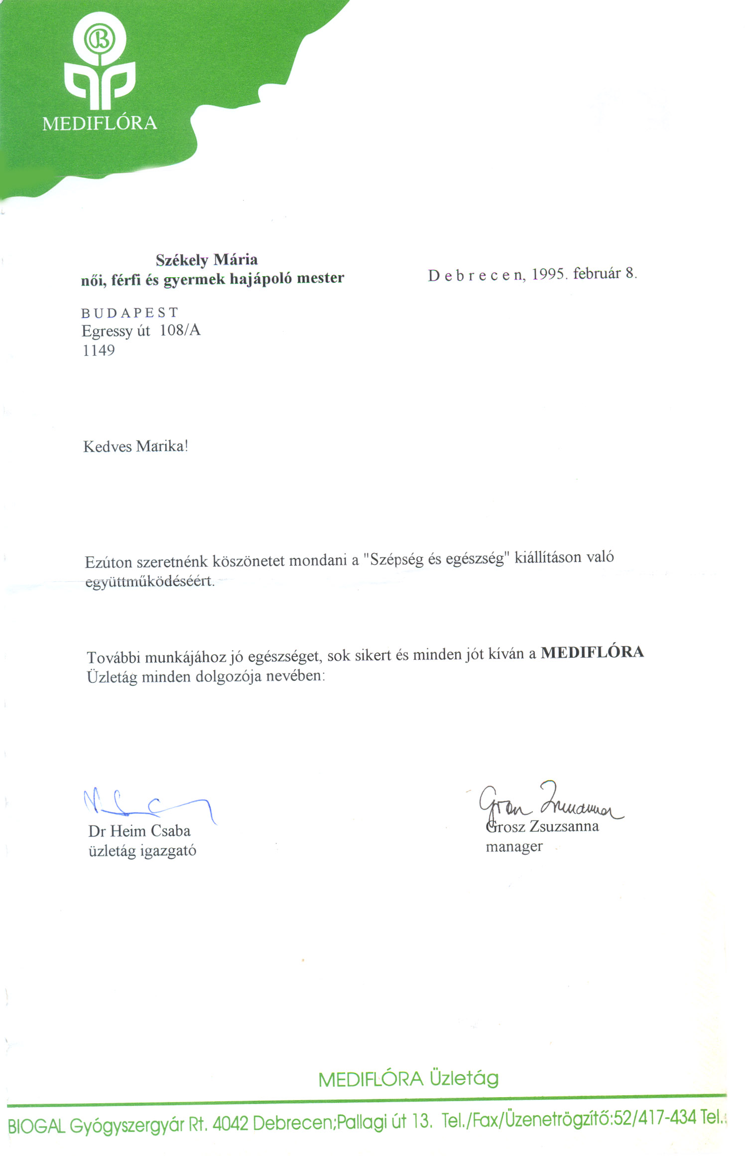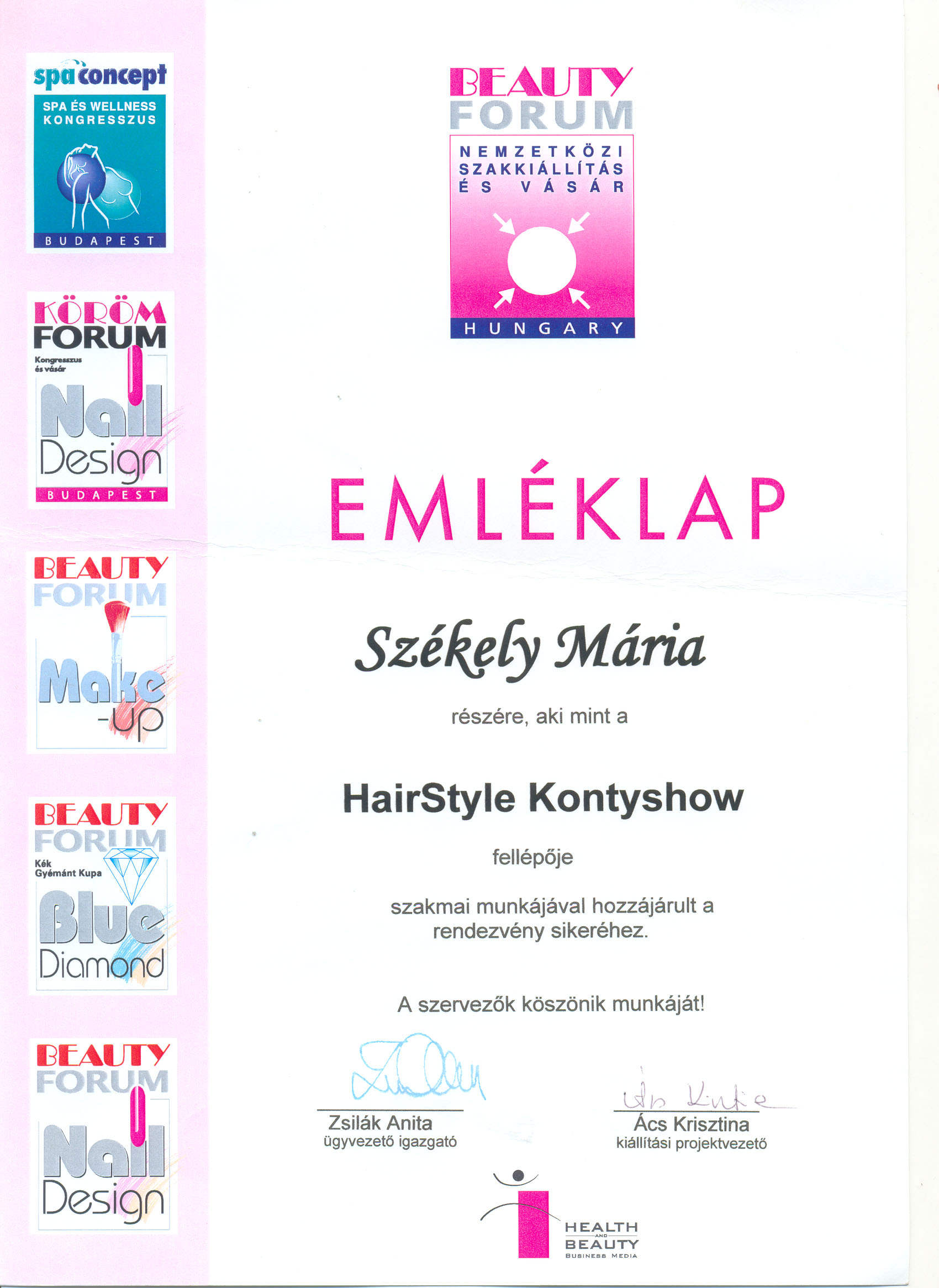 - Szépség - Egészség kiállítás, Debrecen, 1995.