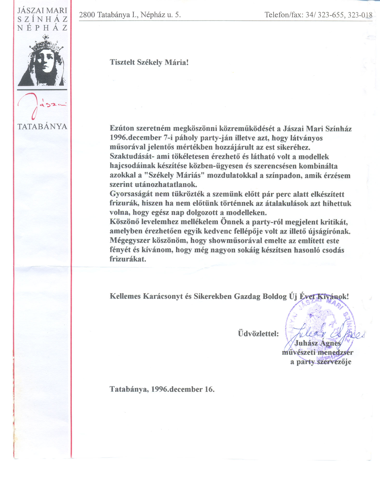 - Jászai Mari színház, Tatabánya, 1996.
