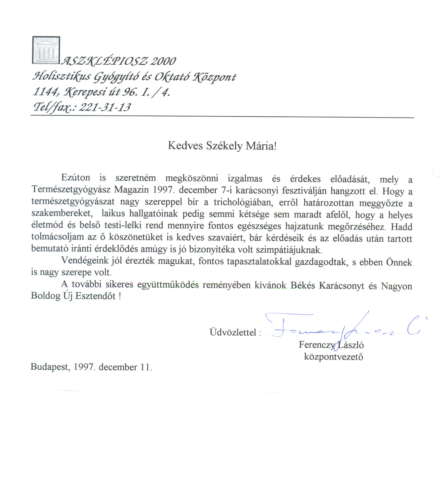 - Természetgyógyász Magazin, Karácsonyi Fesztivál, 1997.
