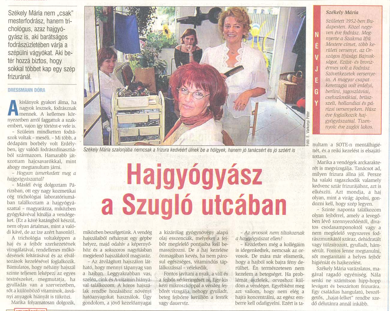 - Újságcikk Székely Máriáról és az üzletről