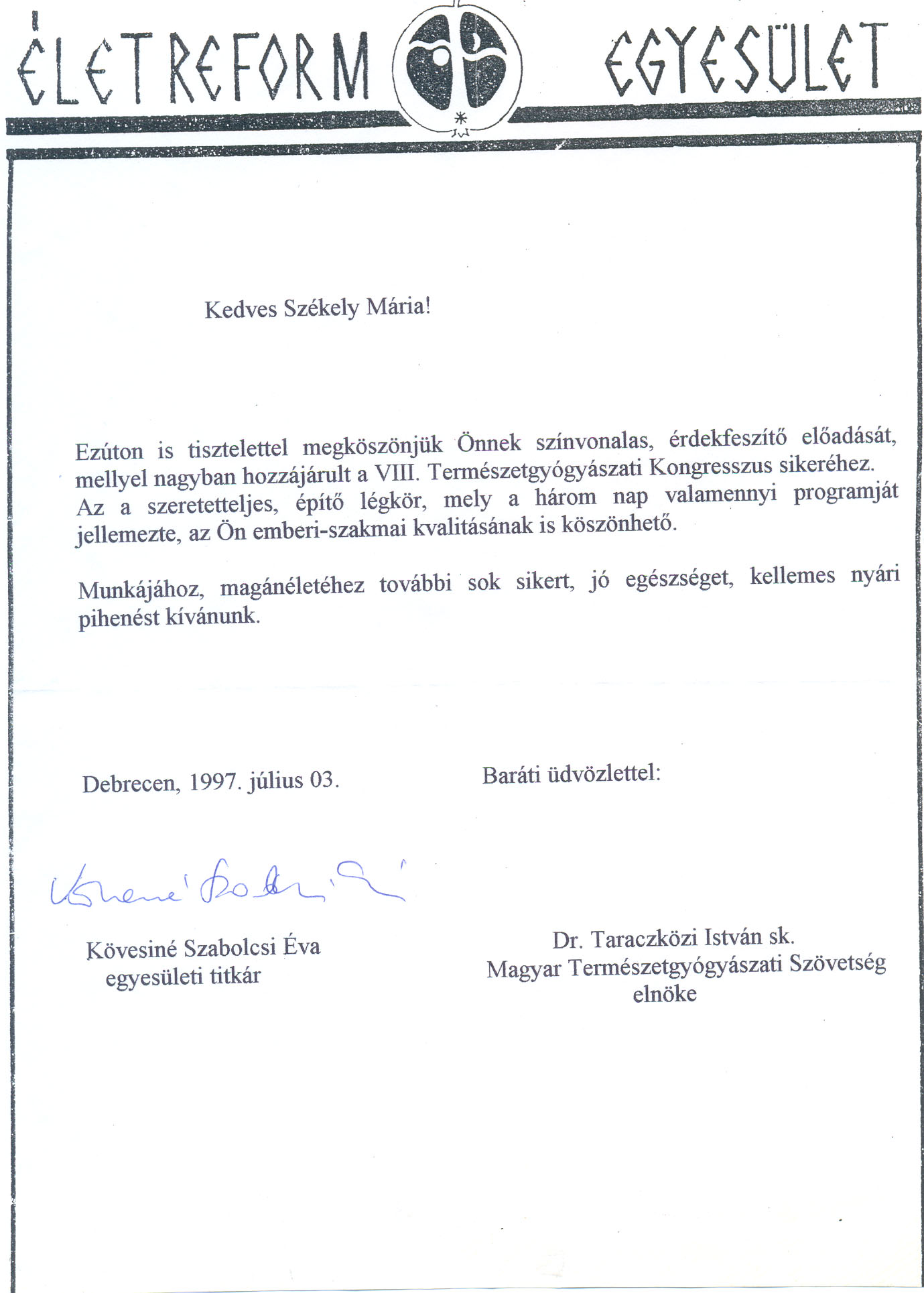 - VIII. Természetgyógyászati Kongresszus, 1997.