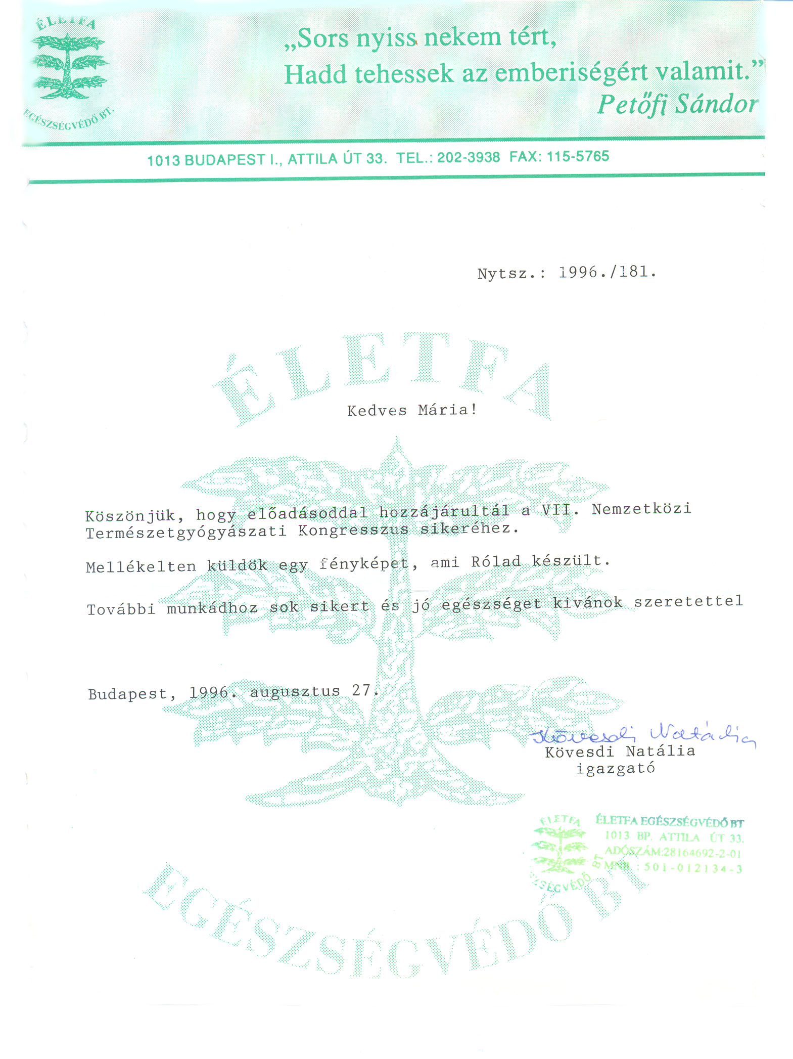 - VII. Természetgyógyászati Kongresszus, 1996.